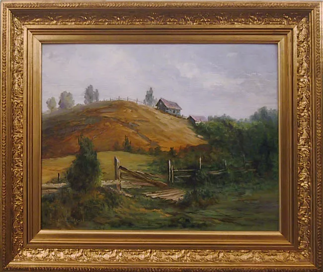 Obra de formato rectangular. Composición en base a un paisaje rural. E...