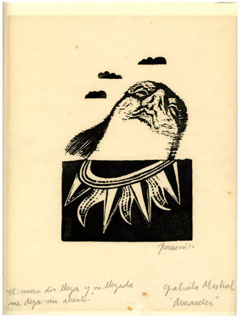Obra de forma rectangular. Presenta el rostro de una figura femenina c...