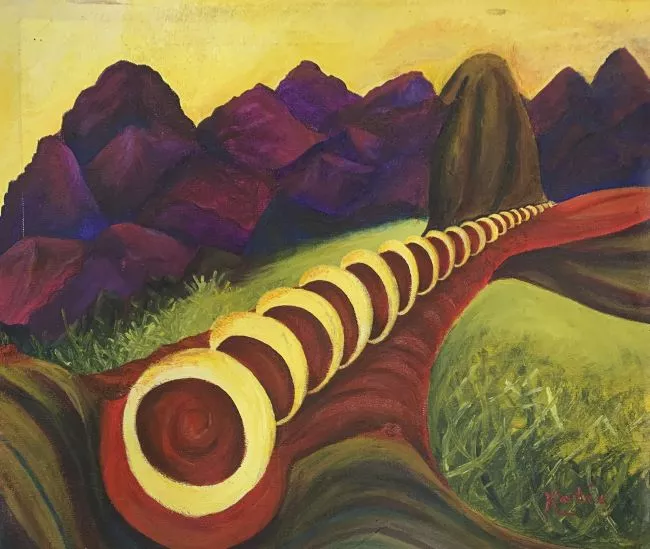 Obra visual de formato rectangular y disposición vertical, la composic...