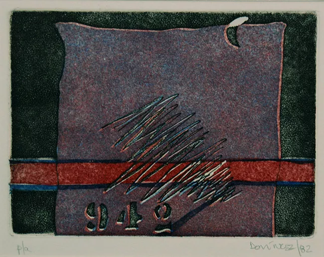 Obra de formato rectangular en orientación horizontal. Grabado abstrac...