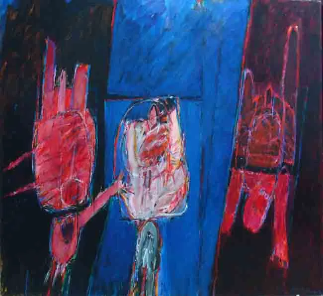 Obra de formato rectangular. Composición en base a paisaje campestre. ...