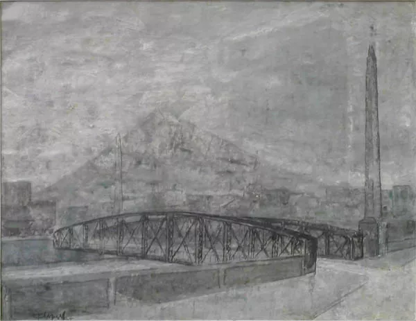 Carreta con bueyes en el río Mapocho (cerca del puente de los palos)