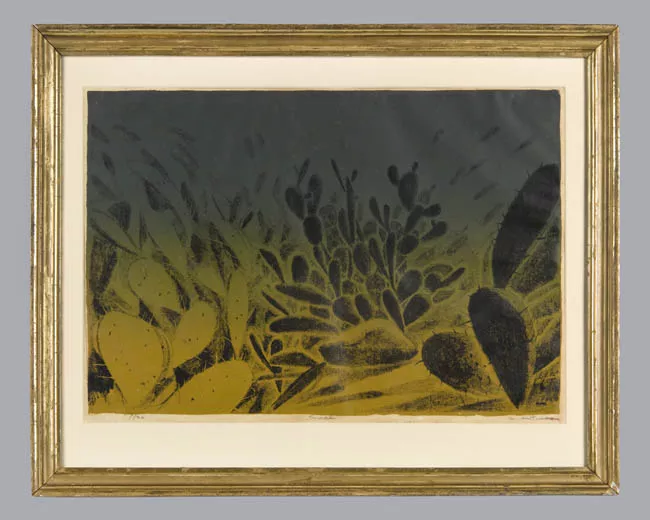 Obra rectangular, orientación horizontal. Imagen blanco y negro. Compo...