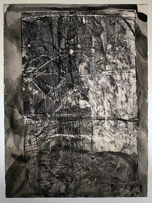 Obra de formato vertical, composición en base a texturas y degradacion...