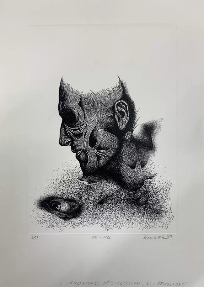 Obra rectangular, orientación horizontal. Imagen blanco y negro. Línea del horizonte sobre la mitad superior de la obra. Vista en perspectiva de composición que asemeja un camino. En el sector derecho varios triángulos. En la esquina inferior izquierda texto en mayúsculas, en las primeras líneas se lee "ESTE OBJETO FORMA PARTE DE UN ESTUDIO SOBRE LA FALTA DE PROGRAMACION DE ELEMENTOS QUE SIRVAN DE INCENTIVO VISUAL...". En la esquina inferior derecha se distingue un recuadro con la leyenda "estudio de incentivación visual en vías rurales / uzi kotler / cayc 5-1972".
