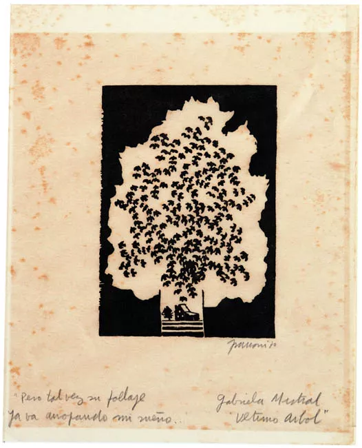 Obra de forma rectangular. Presenta la imagen de un árbol de color bla...