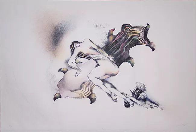 Obra formato rectangular, horizontal. Composición en base a representa...