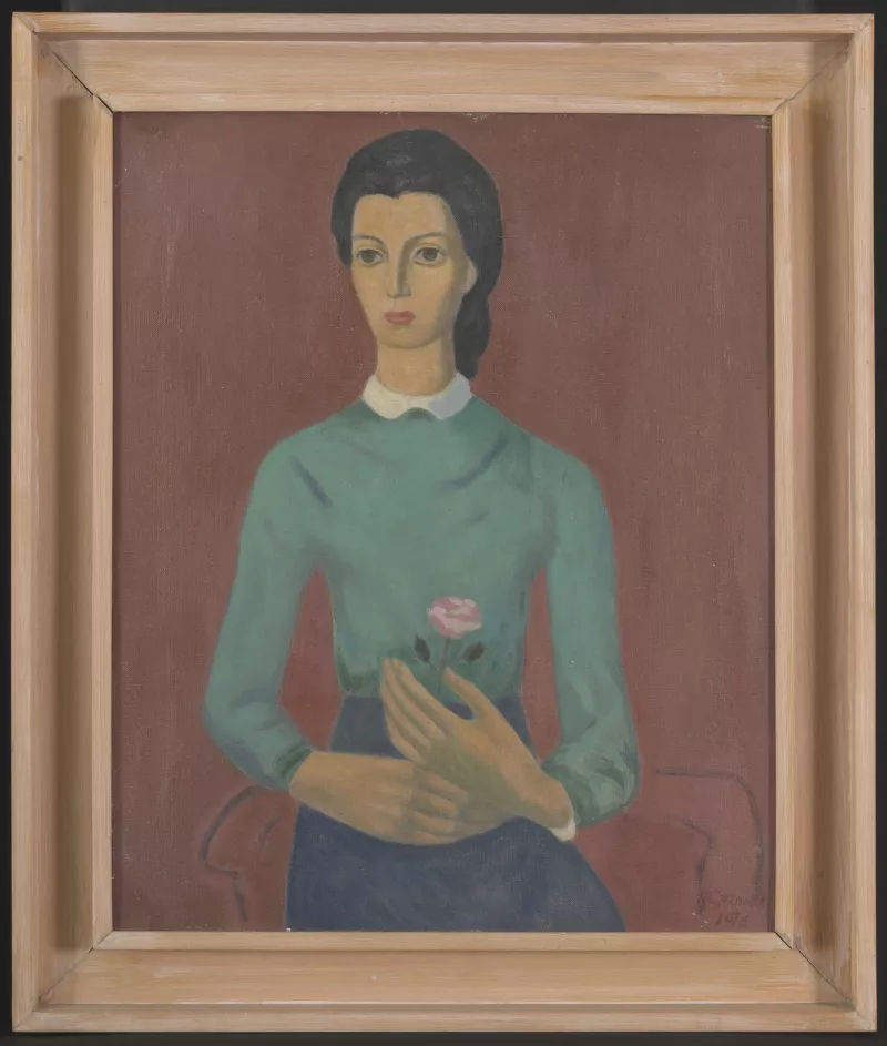 Obra de formato rectangular. Composición en base a retrato femenino. L...