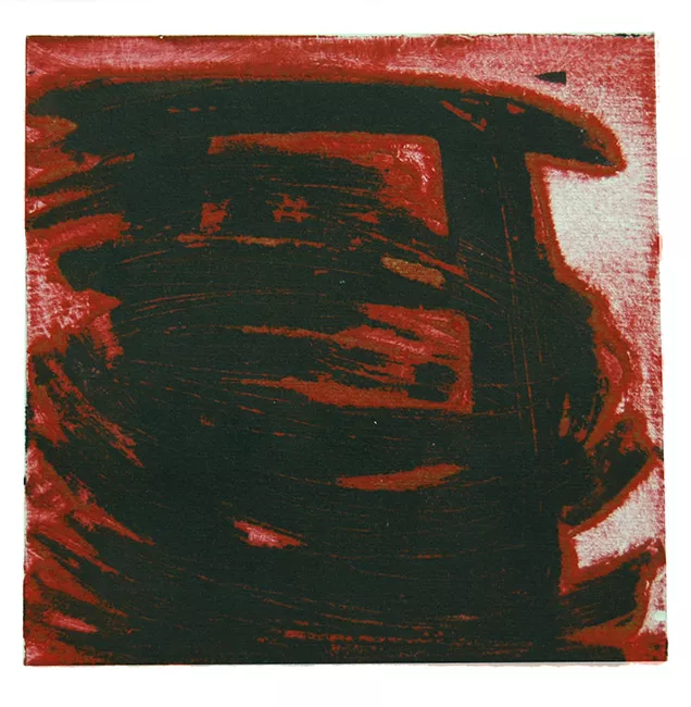 Obra de formato rectangular en orientación horizontal. Grabado abstrac...