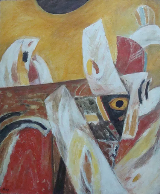 Obra de formato rectangular con marco dorado, cuya composición se basa...