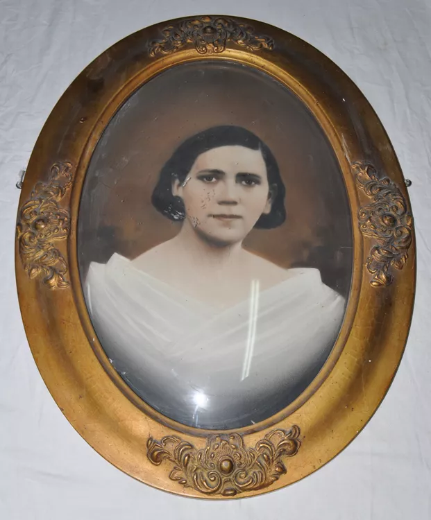 Obra de formato ovalado en orientación vertical. Composición en base a...