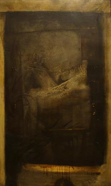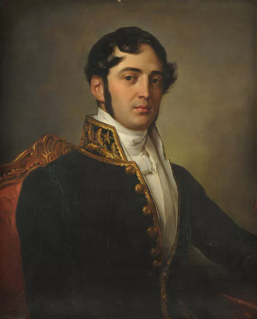Figura masculina de medio cuerpo y medio perfil, viste casaca oscura c...