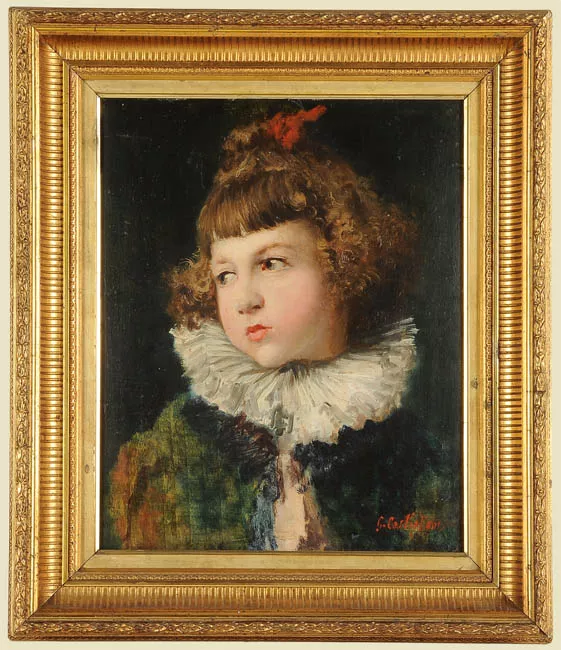 Obra inscrita en formato rectangular. Composición en base a busto mas...