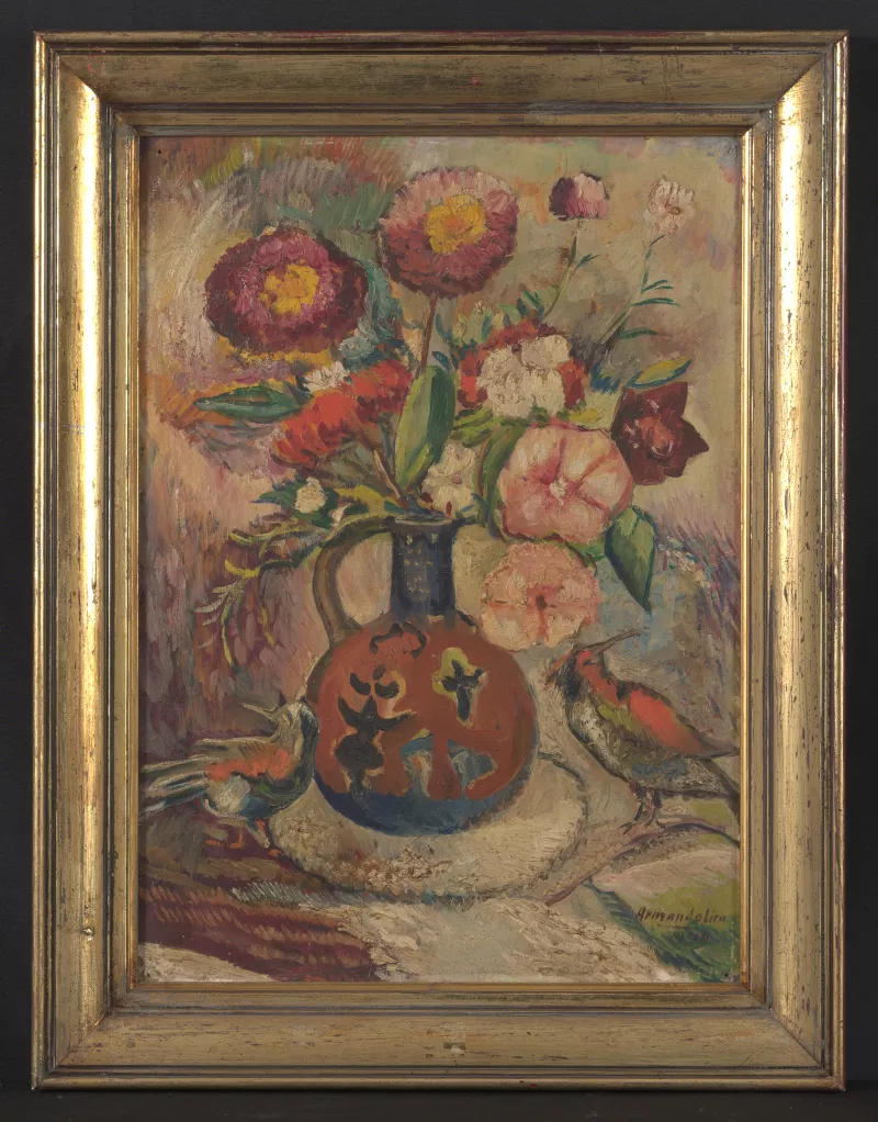 Obra de formato rectangular, disposición horizontal. Composición en ba...