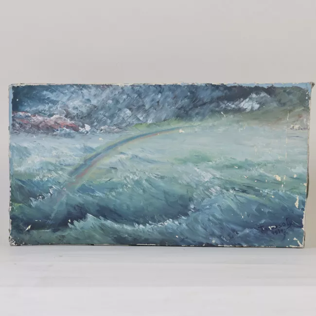 Obra visual, pintura que muestra un paisaje abstracto de colores princ...
