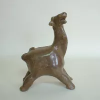 Objeto decorativo, es un busto femenino que presenta la cabeza inclinada hacia la derecha, la cabeza tiene el cabello recogido que forma un relieve en ondas sobre la frente. De rostro despejado y facciones angulosas; el cuello y hombros están descubiertos. El extremo inferior forma base es elíptica y plana. Está esmaltada marrón rojizo en el pelo; el rostro y cuerpo presenta un color de rosa pálido, ojos celestes y detalles amarillos en su vestido,