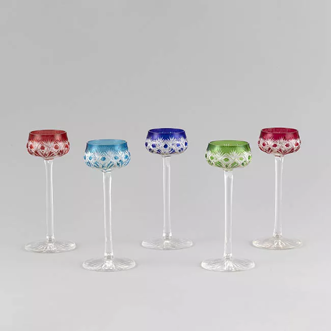 Copa de vidrio doblado tallado, que se usa para tomar licores dulces o...