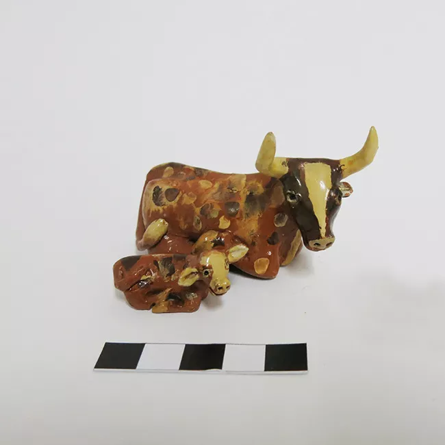 Conjunto de objetos decorativos, formado por dos figuras zoomorfas, va...