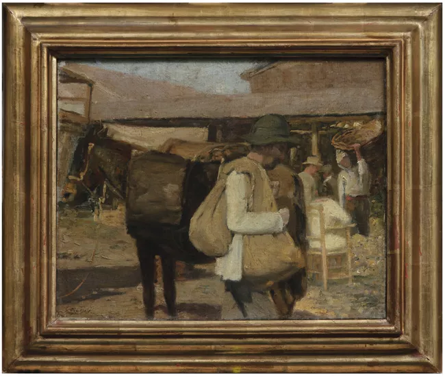 Composición vertical en que se representa una figura masculina de pie, de cuerpo completo. Tiene vista al frente semiperfil a la izquierda, usa sombrero tipo bombín de color negro. Lleva bigote y barba larga. En su mano derecha tiene guantes y en la izquierda sostiene un manuscrito. Viste chaquetilla de color negro corta con medias negras que lleva la cruz de la Orden de Santiago en lado izquierdo, sobre éste usa capa negra que también tiene la cruz de la Orden al mismo lado. Usa gorguera de color blanco, encaje blanco que sobresale de las mangas. Atrás cortinaje de color verde con encintado y flecos en dorado. Se incluye una cartela redonda en la zona baja derecha con las inscripciones: D. FRAN. CO.PI.ZARRO.MARQs.DE LOS ATABILLOS.GOBE or IA DE …ENVIRTUD DE UNA. CAPTIACION QUE SEOTORGO en 26 JU lio EN 1529 i ENTRO EN EL PERU EL Año 1530, que traducidas del castellano antiguo se lee: Don Francisco Pizarro Marques de los Altabillos, gobernador mayor del reino en virtud de una capitulación que se (le) otorgó en 26 de julio en 1529 y entro en el Perú el año 1530.
