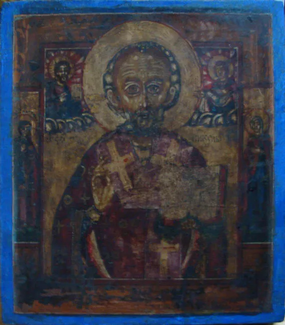Composición formada por figuras triangulares de grises, verdes y rojos...