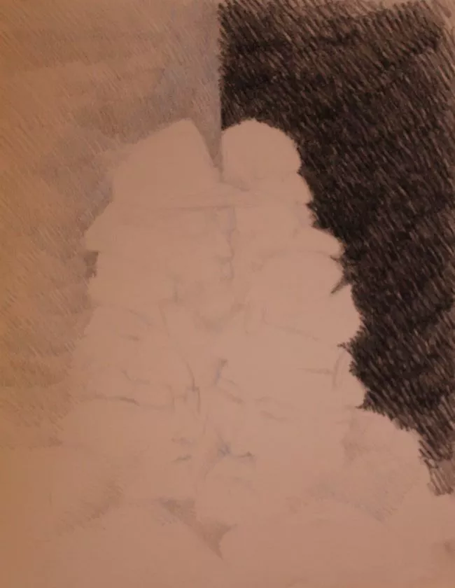 Obra visual de formato rectangular y disposición vertical. Dibujo mono...