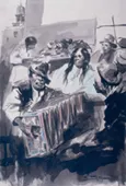 Obra bidimensional en color de formato rectangular, composición en bas...