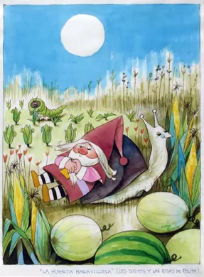Escena de formato vertical. En primer plano vemos unas sandías. Detrás...