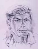 Obra visual de formato rectangular y disposición vertical. Dibujo mono...