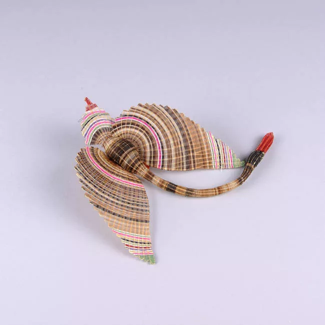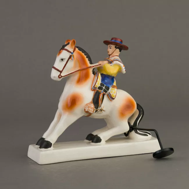 Objeto decorativo, es una figura zoomorfa, con aspecto de cerdo; de volumen globular y color negro con ornamentación blanca. Posee cuerpo abultado con una pequeña ranura en el lomo, en la zona frontal destaca su cabeza erguida, el relieve de las orejas largas curva, que se prolongan hacia arriba, también su trompa prominente, hocico agudo y dos perforaciones circulares forman los ojos; en la parte posterior un breve relieve forma su cola. Se eleva sobre tres patas cónicas . Presenta decoración en diseño figurativo esquemático, líneas blancas, ubicadas sobre el cuerpo; el acabado es pulido brillante, homogéneo.
