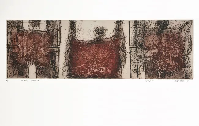 La obra presenta paspartú y marco dorado, con decoraciones florales en el borde superior.