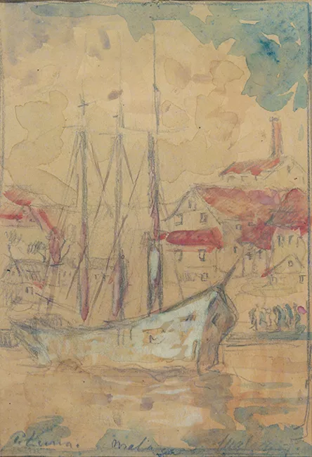 Composición en base a un muro. Al costado izquierdo, presenta una pila...