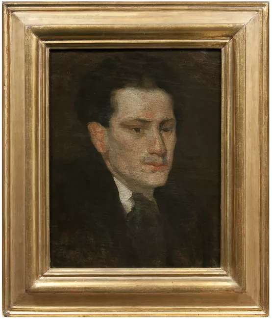 Obra de formato rectangular. Composición en base a retrato de figura m...