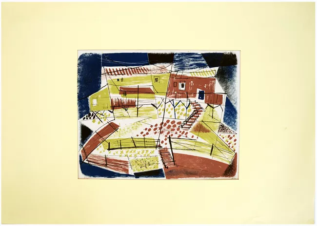 Obra visual de formato rectangular y disposición horizontal, la compos...