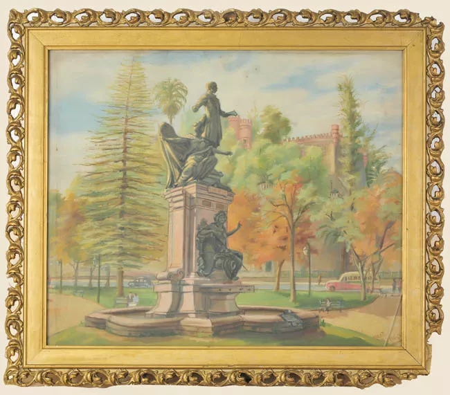 Composición en base a figura masculina de tres cuartos de cuerpo, cabe...