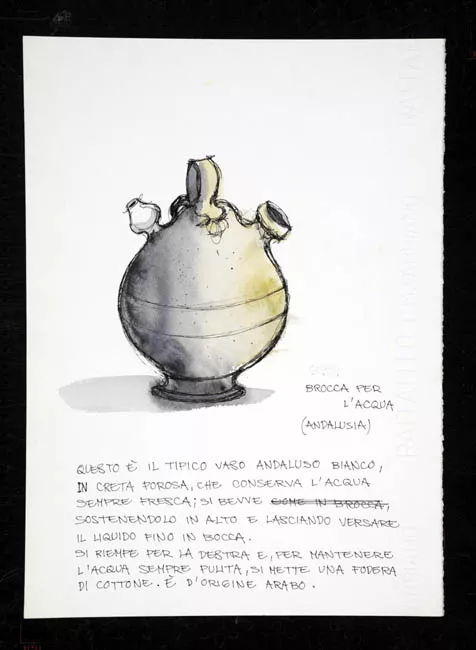 Dibujo de una vasija ovoide con un asa en su parte central, una boquil...