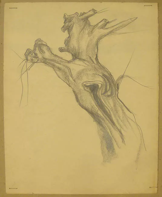 Obra rectangular, orientación vertical. Composición en base a árbol de...