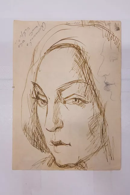 Dibujo monocromo que representa en un primerísimo plano el rostro de u...