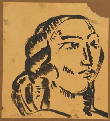 Composición rectangular, orientación vertical. Cabeza femenina de medi...