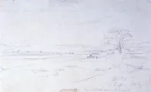 Composición rectangular en formato horizontal. Paisaje rural. En extre...