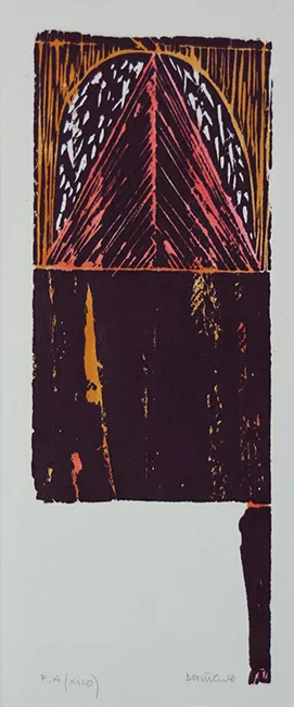 Obra de formato rectangular en orientación vertical. Grabado abstracto...