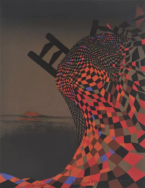Obra de formato rectangular en orientación vertical. Grabado figurativ...