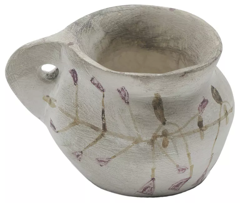 Conjunto de piezas de greda color rojizo, compuestas por una tetera (tipo pinchel), un azucarero, una jarro con un asa lateral, otro jarro con asa rota, dos vasijas cos asas laterales y una bandeja redonda con bordes ondulados. Tanto el jarro sin asa y las dos vasijas con de acabado mate, mientras que el resto tiene acabado pulido, brillante.