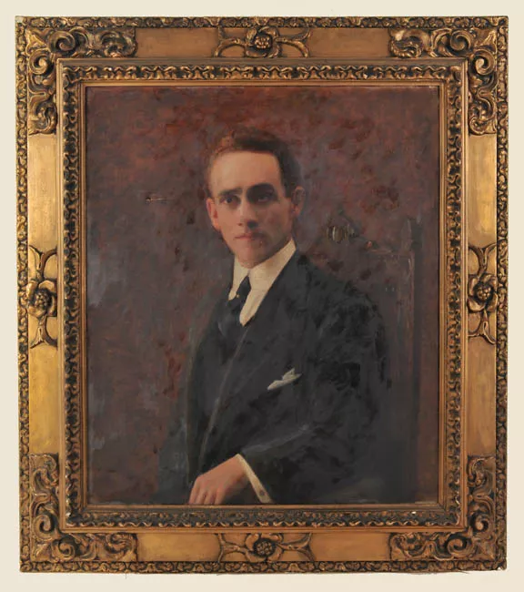 Obra de formato rectangular. Composición en base a figura masculina de...