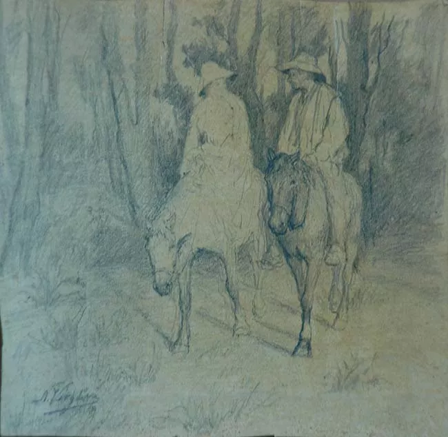 Obra de formato rectangular en orientación horizontal. Dibujo figurati...