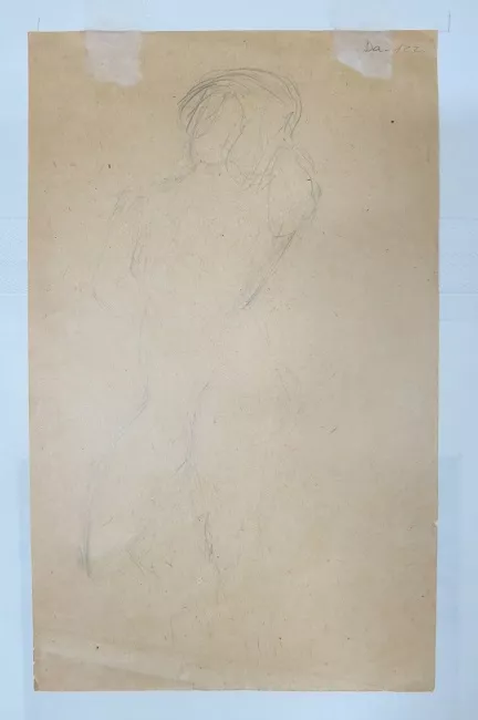 Obra visual de formato rectangular y disposición vertical. Dibujo mono...