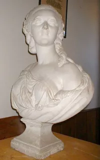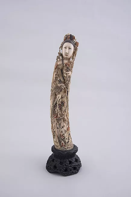 Escultura de figura femenina, de cuerpo entero y de pie, que en su bra...