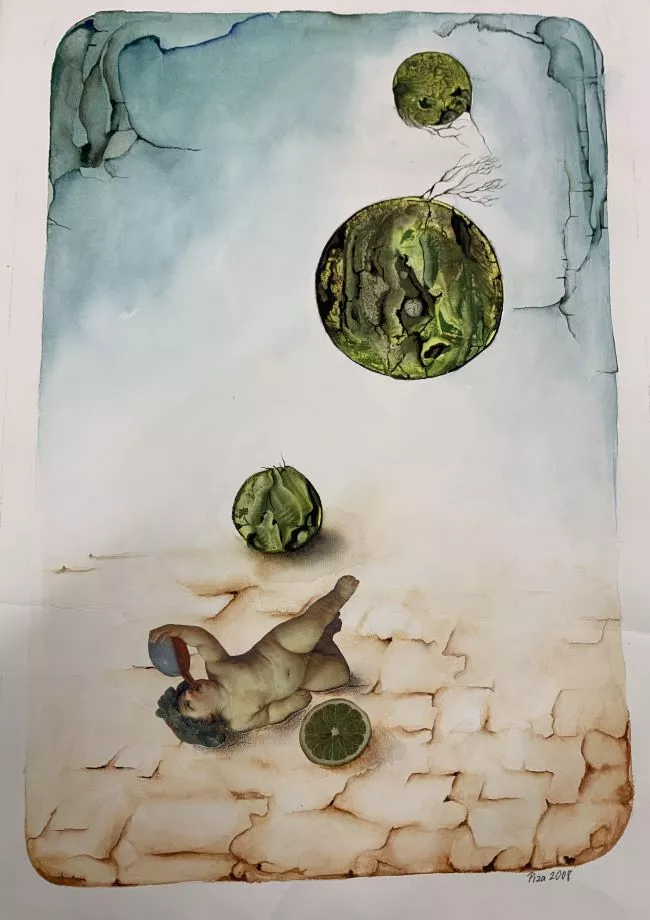Pintura de disposición vertical cuya composición se basa en un paisaje...