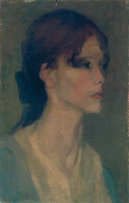 Obra de formato rectangular. Composición en base a retrato femenino de...