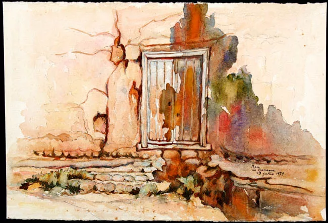 Composición en base a una vista frontal de un muro con puerta al centr...