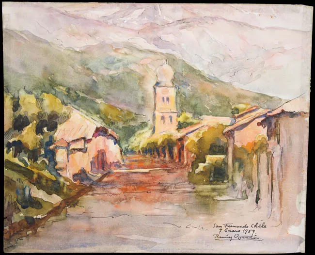 Composición en base a un paisaje urbano. Presenta una calle en perspec...